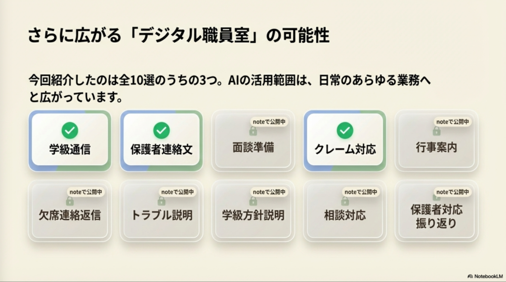 日常の学校業務を少しでも効率化するヒントとして活用していただければ幸いです。