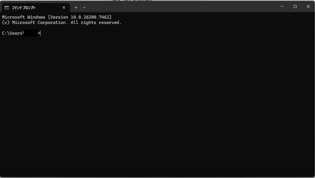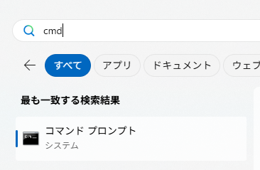- 開き方:Windowsキーを押して「cmd」と入力し、Enter。