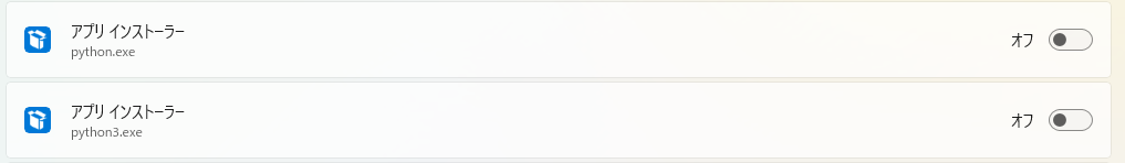 - 「Python.exe」をオフにする。